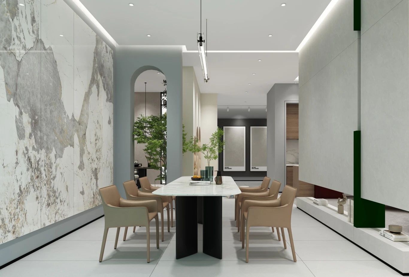 德田陶瓷有著二十余載的歲月沉淀,將歷史底蘊結合現代新中式趨勢,運用于SI形象展廳設計中,不僅展現了老品牌獨具匠心、嚴謹細致的品牌精神,也為展廳空間注入更多時尚化年輕化藝術化的美感,奠定品牌未來發展基調,滿足新時代人類的消費需求。