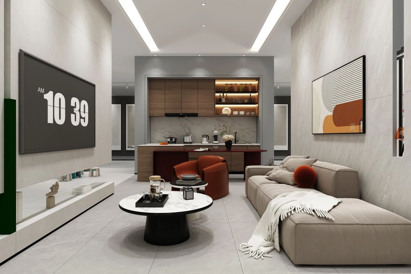 因而德田陶瓷以設計驅動,采用場景化體驗展示方式,呈現出完整的客廳、臥室、餐廳、廚衛等整體空間的產品應用方式,直觀地帶給用戶具象化的應用效果。