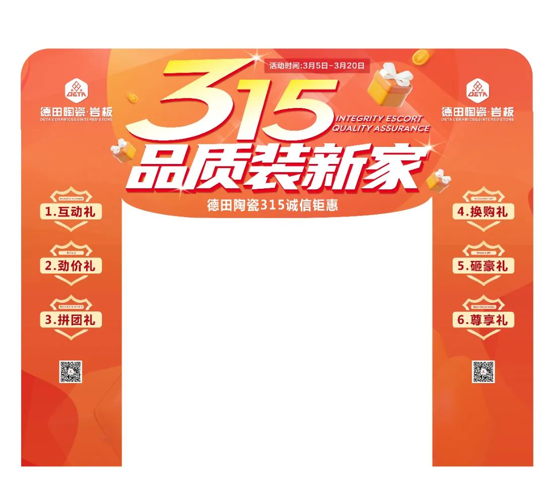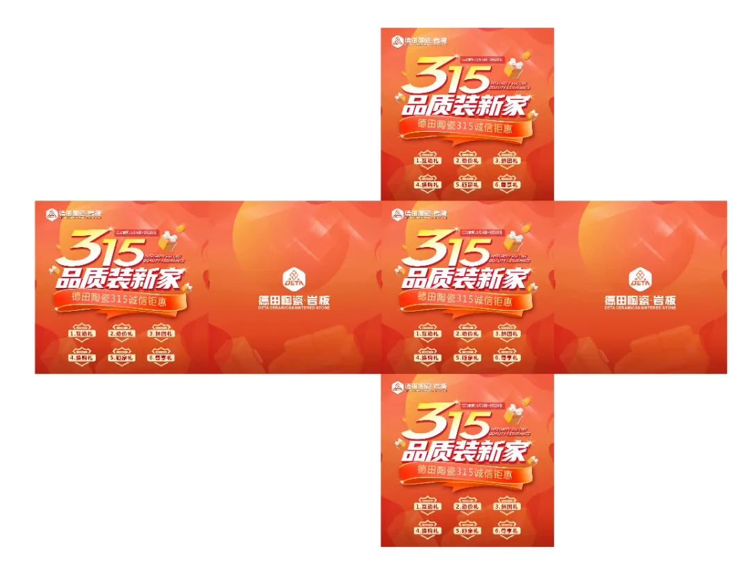 為了更好地配合各地經(jīng)銷商開展3·15促銷活動(dòng),助力終端店面營(yíng)造濃郁的活動(dòng)促銷氛圍、抓住開春時(shí)機(jī),搶占市場(chǎng),贏得門店銷售開門紅,德田陶瓷推出系列促銷方案及設(shè)計(jì)了3·15氛圍相關(guān)物料(含拱門、單張、展架、貼紙等整套源文件)供各位經(jīng)銷商朋友使用。請(qǐng)各經(jīng)銷商家人們咨詢所屬區(qū)域經(jīng)理領(lǐng)取,并在當(dāng)?shù)剡M(jìn)行制作。(方案內(nèi)容僅供參考,經(jīng)銷商可根據(jù)自身實(shí)際需要作出調(diào)整)